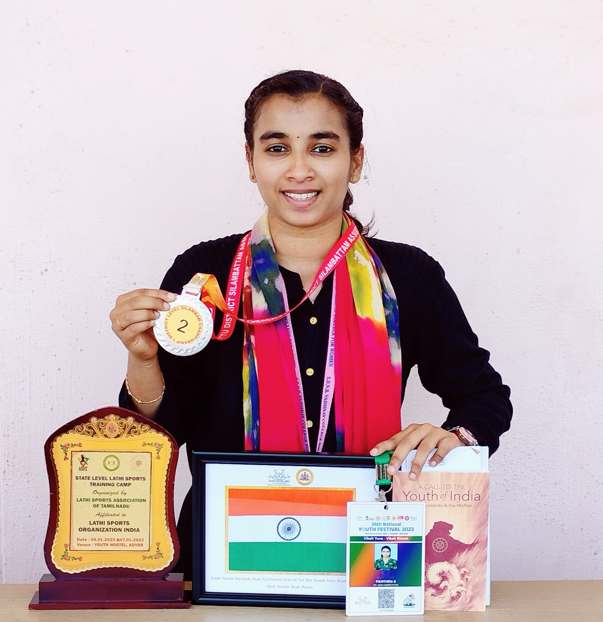 P.Moksha of II BBA won Runner-up position in the District Carrom Women’s Singles Tournament held at Kancheepuram on 23rd and 24th August 2025.