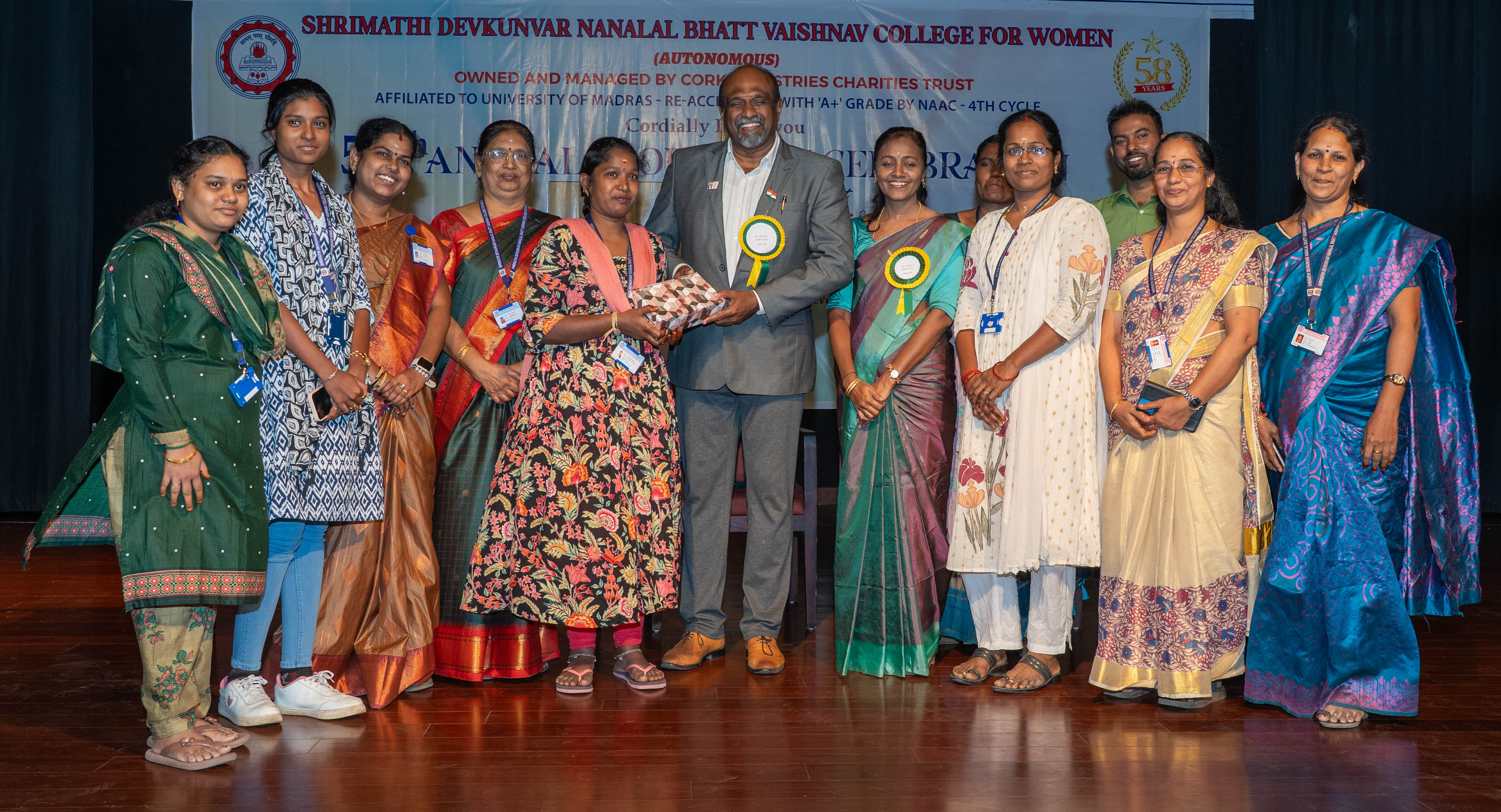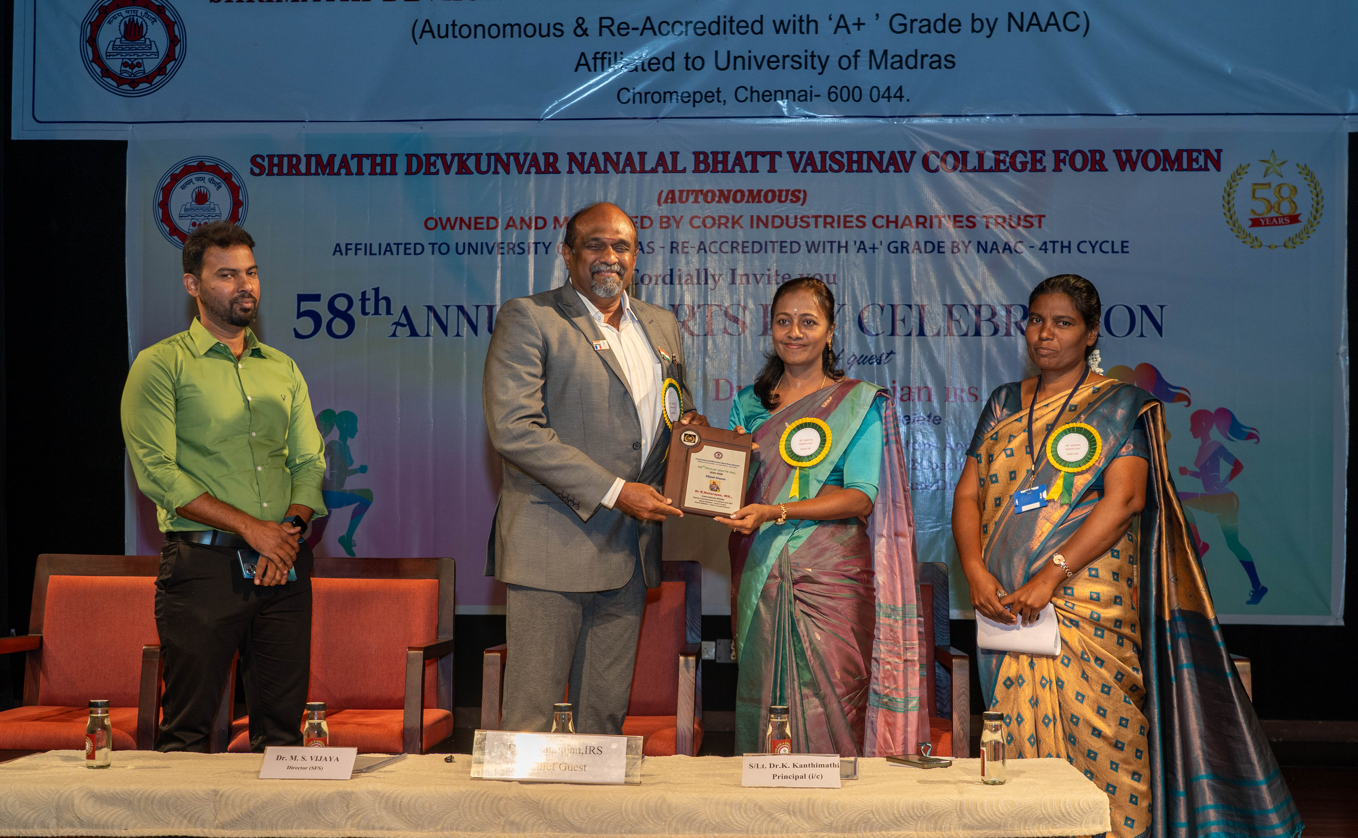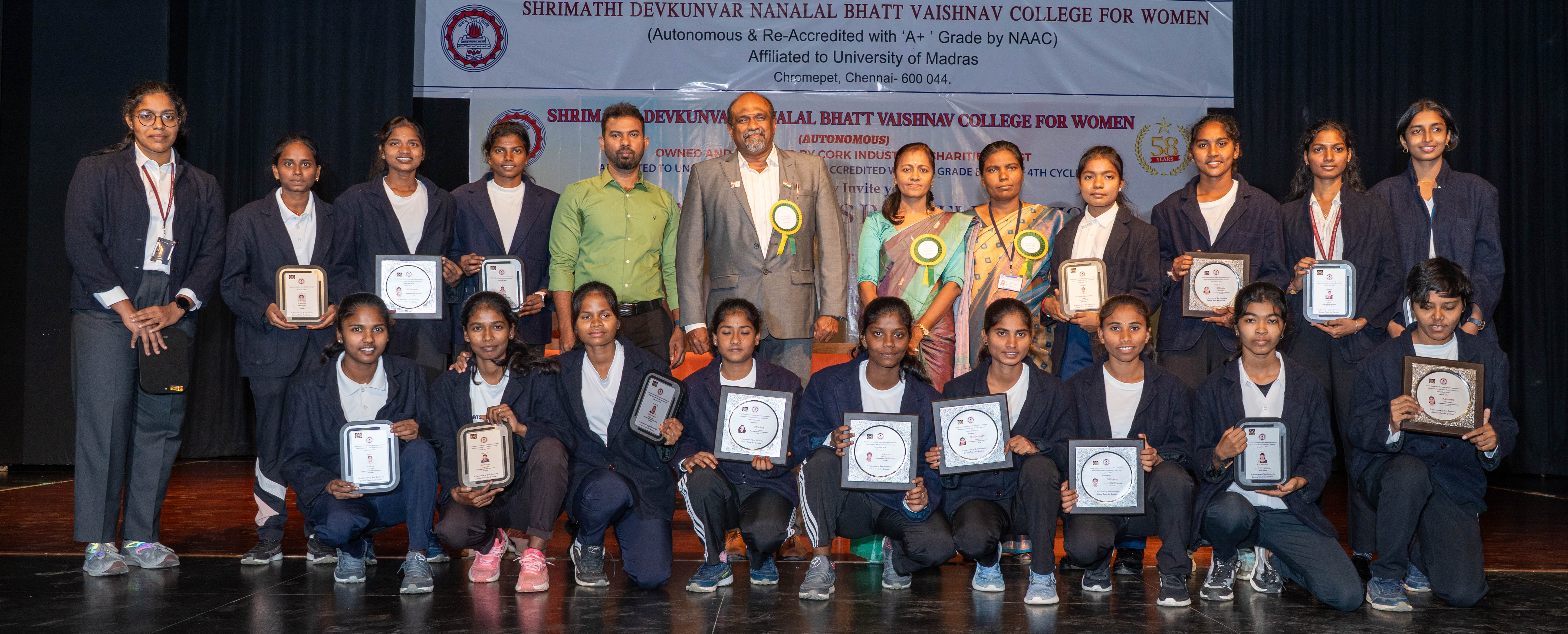 Shrimathi Devkunvar Nanalal Bhatt Vaishnav College for Women was started in 1968 with the generous donation of 10 acres of land by our Late Founder Chairman Shri Nanalal Bhatt and 6 lakhs donated by Cork Industries Charities Trust. The College is named after the Late Founder Chairman’s wife Smt. Devkunvar. This college is the first women’s college in Kancheepuram District, Tamil Nadu. The present Chairman Smt. Mamta D. Bhatt is a dynamic and energetic leader with innovative ideas and with the potential of executing them precisely. The College Secretary,