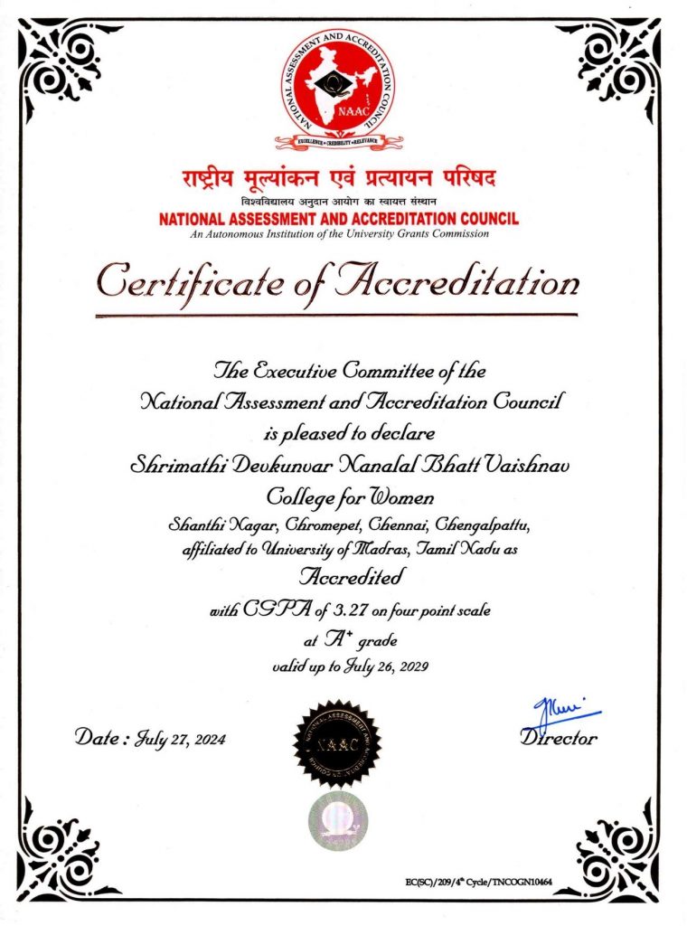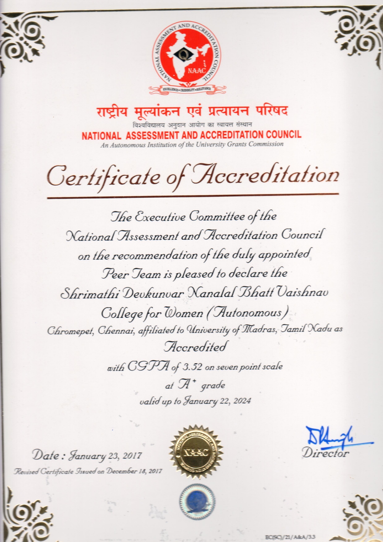 Affiliated to University of Madras - Re-Accredited with 'A+' Grade by NAAC - 4th Cycle