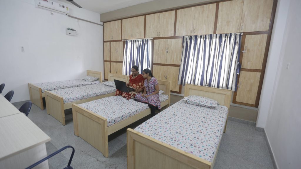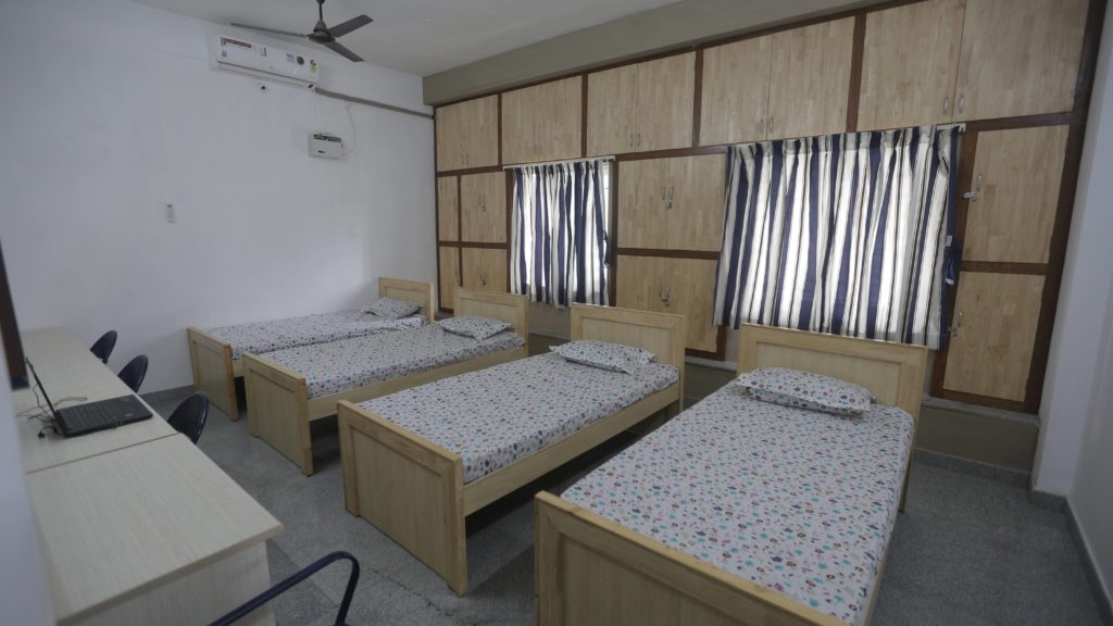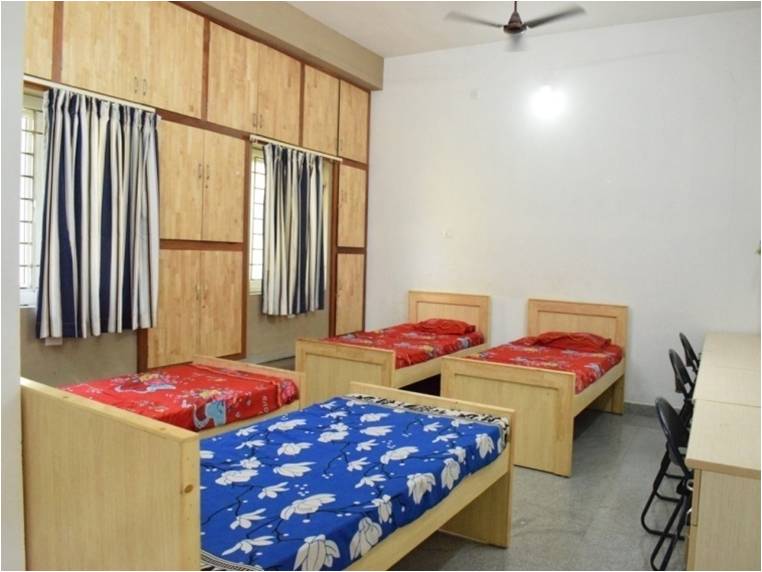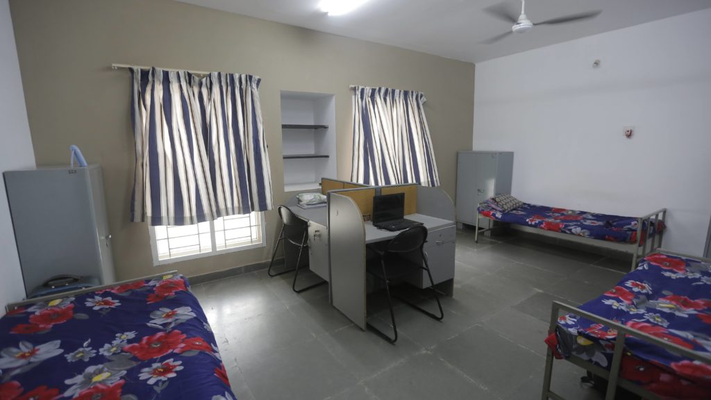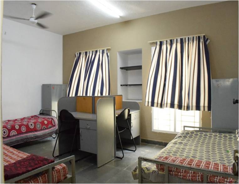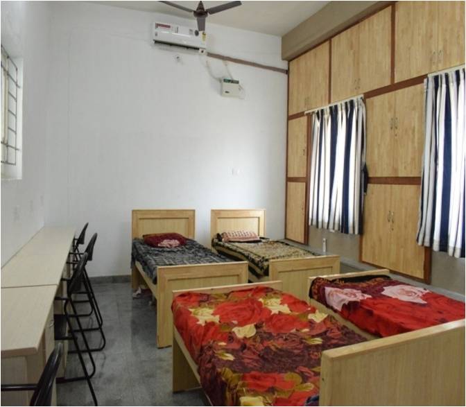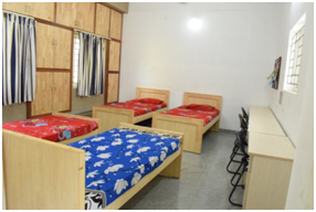 • Dormitories of various capacities – 3 beds,  4 beds, few with AC & attached bath rooms, non AC with attached bathrooms