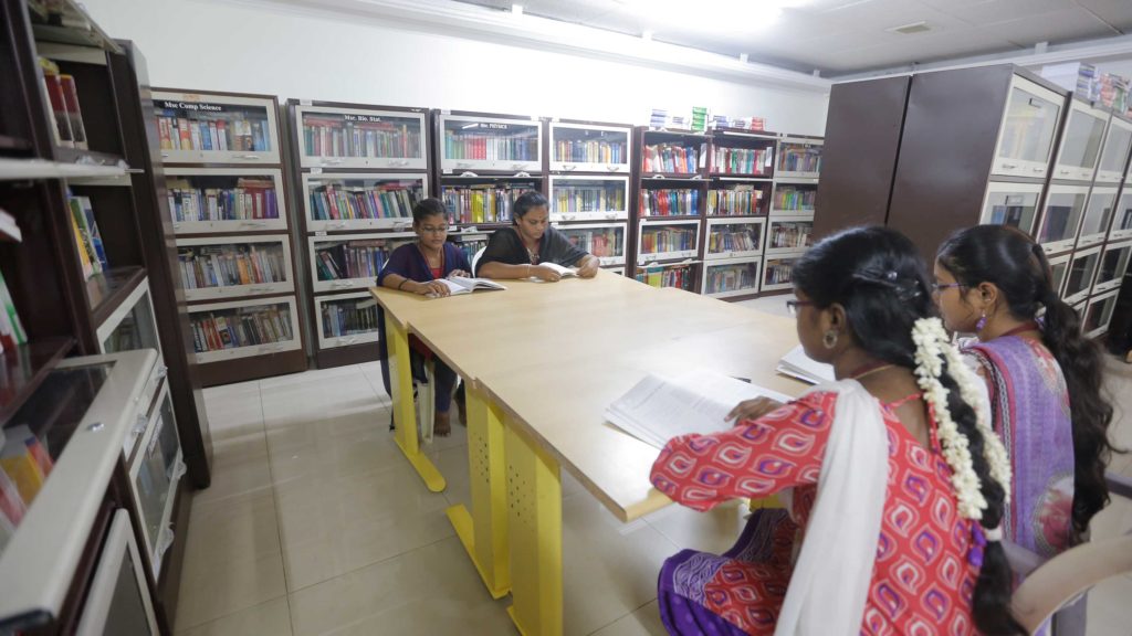 Our college has an excellent Library functioning in the Golden Jubilee Block 1st Floor of about 10,000 Square feet area with beautiful ambience. Library is equipped with a good collection of books apart from journals , periodicals , research theses , reports and online resources enabling the Student’s quest to update their day-to-day Knowledge. It offers Information services to its Faculty members , Research Scholars and Students for their academic requirements. Users can access information on their desktops through web OPAC (Online Public Access Catalogue). We have organized workshops , webinars and FDP with experts from various institutions like Anna University , IIM Trichy , Goa University , Scientist from ISRO , MSSW , Rapid radio solutions , Linuxpert system etc. and also conducted book fairs with reputed publishers like Tamilnadu book house , New century Book house , TBH , Scitech , Shanti books , T.R Publications , S.Chand & Co., Asian Book Centre ,RRM books , Margham publications etc.