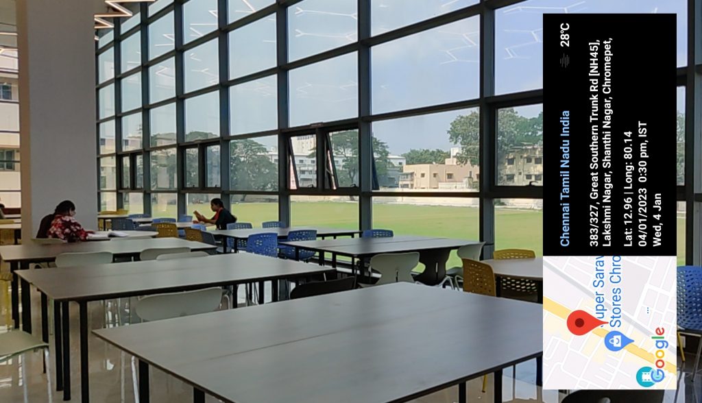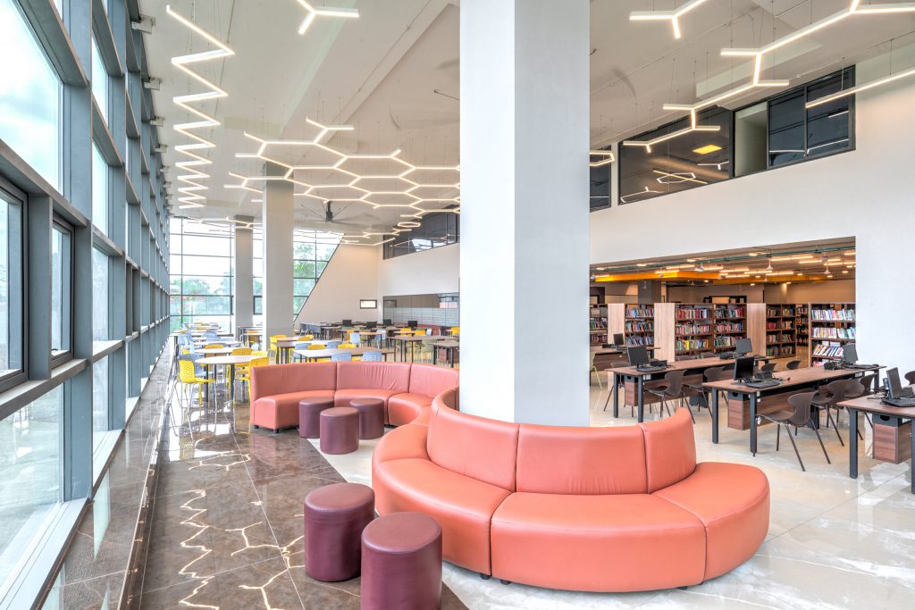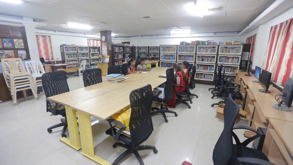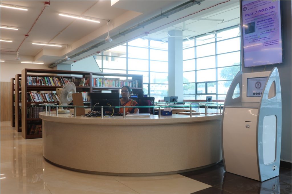 - A spacious Reading hall is available inside the Library with the seating capacity of 150 with 51 systems to access e resources.