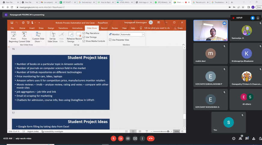 A webinar on Robotic Process Automation and its Use Cases organised by UG Department of Computer Science with Cognitive Systems on 14/09/2022