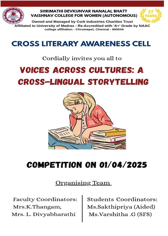 On 26th March 2025, the Cross-Literary Awareness Cell organized a Multilingual Reading Session for the club members. The organizer took the opportunity to introduce the Cross-Literary Awareness Cell, emphasizing its crucial role in promoting a diverse range of literary expressions across various languages. The cell’s work in fostering cross-cultural understanding through literature was highlighted, illustrating its significance in broadening perspectives and celebrating the richness of global literary traditions.