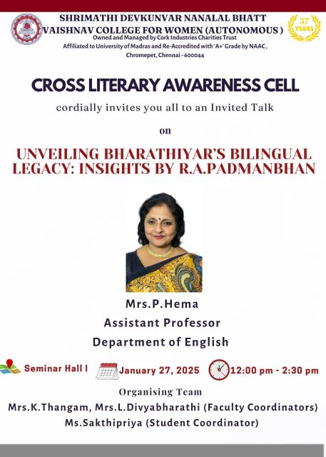 Invited Talk – Unveiling Bharathiyar’s Bilingual Legacy