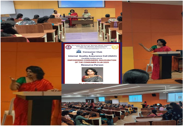 The Consumer Club of our institution was inaugurated on 17th September 2025 at Seminar Hall–2 between 12:00 pm and 2:00 pm with the theme “Empowering Consumers”. The programme began with a warm welcome address, followed by the formal inauguration of the Consumer Club. In his keynote address, the chief guest emphasized the importance of consumer awareness, legal rights, and the active role of youth in promoting ethical practices in the marketplace. He also shared practical insights on grievance redressal mechanisms and consumer protection laws. The session was highly interactive, with students raising questions and receiving valuable guidance from the resource person. The event concluded with a vote of thanks, reaffirming the club’s commitment to organize awareness programmes, workshops, and campaigns in the future. Overall, the inauguration of the Consumer Club 2025 served as a significant step toward empowering students as informed and responsible consumers, and it inspired them to extend consumer awareness both within and outside the campus.