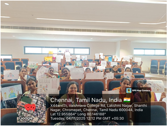 The session on “Introduction to Child Rights” was conducted to sensitize students towards the importance of safeguarding the rights and welfare of children. The activity began with a brief overview of child rights, covering the four broad categories — Right to Survival, Right to Protection, Right to Development, and Right to Participation.
