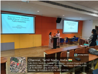 The Humor Club in association with the Internal Quality Assurance Cell (IQAC) of Shrimathi Devkunvar Nanalal Bhatt Vaishnav College for Women (Autonomous), Chromepet, organised an invited talk titled “Beyond Humor: Memes as Tools of Social Learning and Public Awareness” on 29 December 2025 at Seminar Hall II from 12.00 p.m. to 2.00 p.m. The session was delivered by Ms. Akshaya N, Research Scholar, School of Social Sciences and Languages, VIT Chennai. The event aimed to explore the growing social relevance of memes and their potential as effective tools for learning, communication, and public awareness. The speaker highlighted how memes transcend mere entertainment and function as powerful cultural texts that reflect social realities, influence public opinion, and promote critical thinking. Through engaging examples, she traced the evolution of memes and discussed their role in addressing social issues, education, and digital activism. The session also included a hands-on component where students were trained to create meaningful and socially relevant memes, encouraging creativity and responsible digital expression. The interactive nature of the talk motivated students to actively participate, share ideas, and experiment with meme creation as a form of learning. Overall, the event was informative and engaging, successfully sensitising students to the educational and social potential of memes in contemporary digital culture.