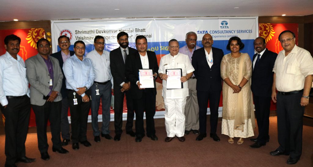 Our college is collaborating with Tata Consultancy Services (TCS) in the Academic Interface Program (AIP) – an initiative of TCS in offering employment oriented education to the students which will strengthen the Industry-Institute relationship and is focused on “Campus to Corporate Transition”, by grooming the students for the corporate world by signing a Memorandum of Understanding on 27th April 2017 .