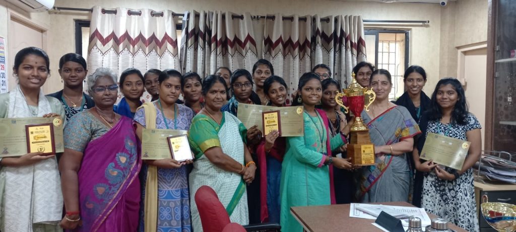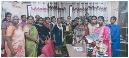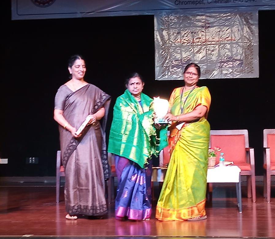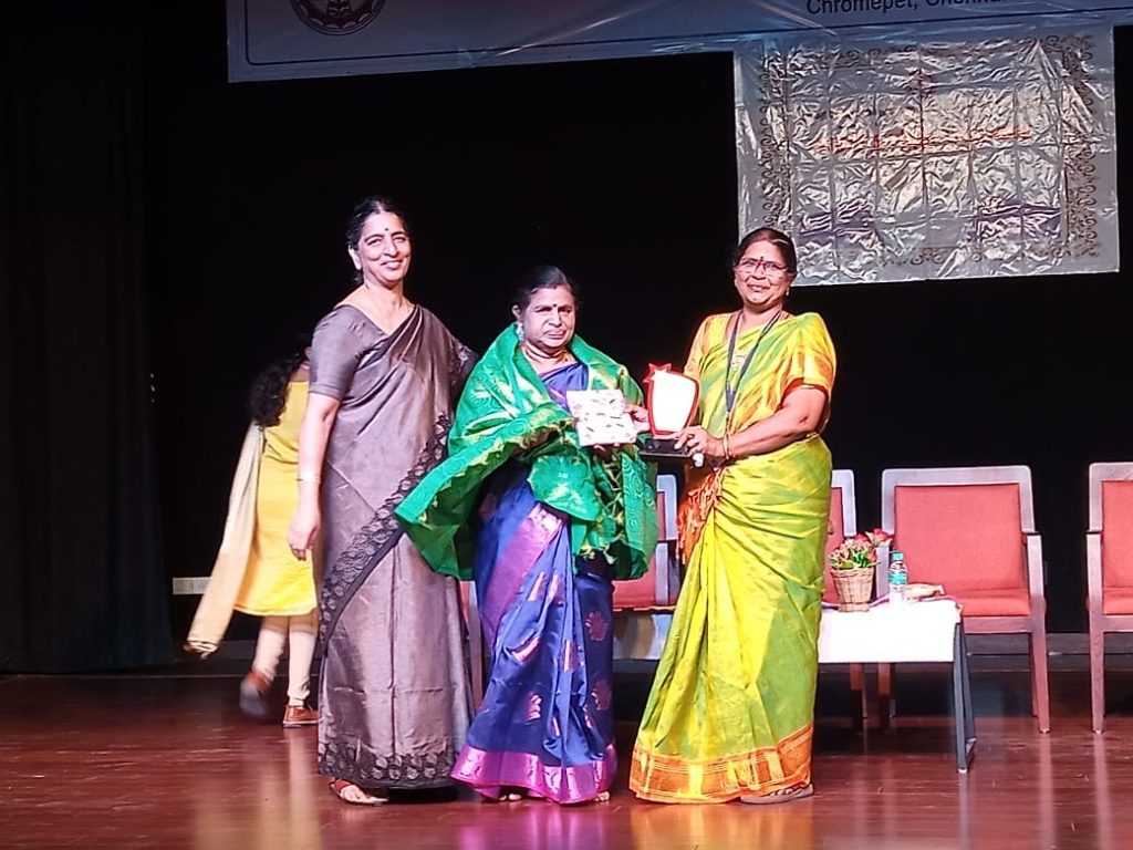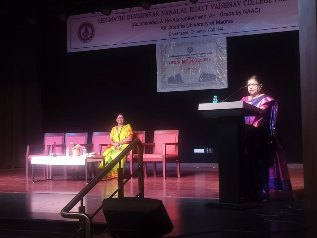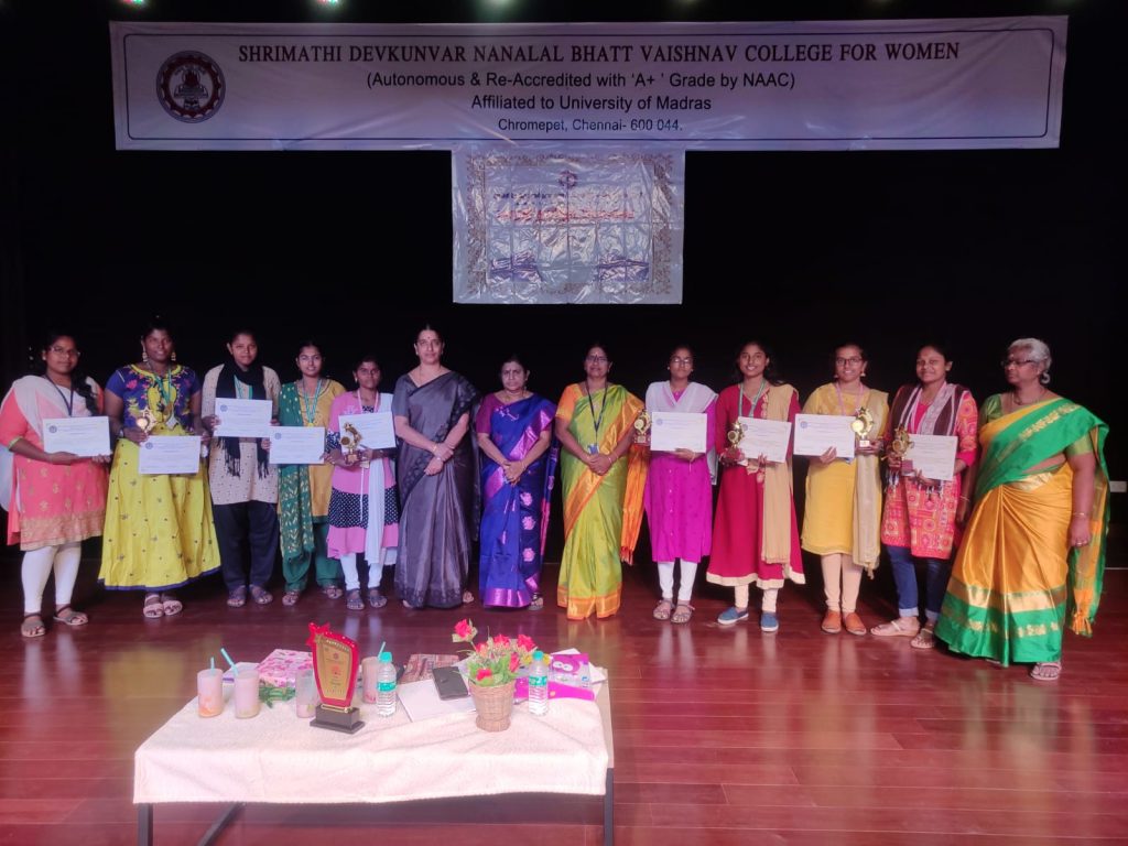 குரோம்பேட்டை எம் ஐ டி தமிழ் மன்றம் நடத்திய தமிழ் கலாச்சார திருவிழாவில் குரோம்பேட்டை, ஸ்ரீமதி தேவ்குன்வார் நானலால் பட் மகளிர் வைணவ கல்லூரி தமிழ்த்துறை சார்பில் மாணவிகள் பத்து போட்டிகளில் பங்குபெற்று சிறப்பு பரிசாக தமிழ் விருது வெற்றிக்கோப்பையை பெற்றுள்ளனர். பரிசு பெற்ற மாணவியருடன் கல்லூரி முதல்வர் இரா.கீதா, தமிழ்த்துறை தலைவர் பேராசிரியர் தி.செந்தமிழ்செல்வி, உதவி பேராசிரியர் ச.பாலசரஸ்வதி உள்ளிட்டோர் பங்கேற்றனர் .