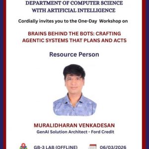 JanuaryFebruaryMarchAprilMayJuneJulyAugustSeptemberOctoberNovemberDecember202220232024202520262027202820292030 Monthly Weekly Daily List March 2026 BRAINS BEHIND THE BOTS: CRAFTING AGENTIC SYSTEMS THAT PLANS AND ACTS ... 06 Mar 11:00 am - 5:00 pm AI vs YOUR FUTURE ... 06 Mar 11:30 am - 1:30 pm ALUMNI MEET ... 07 Mar 1:30 pm INDIA – MALAYSIA International Youth and Group Study Exchange Programme – 2026 ... 09 Mar NEXT – GENERATION CLOUD COMPUTING: TRENDS SHAPING THE FUTURE ... 10 Mar 1:00 pm - 3:00 pm INDIA – MALAYSIA International Youth and Group Study Exchange Programme – 2026 ... 10 Mar National Industry-Academia Conclave 2026 ... 11 Mar INDIA – MALAYSIA International Youth and Group Study Exchange Programme – 2026 ... 11 Mar National Industry-Academia Conclave 2026 ... 12 Mar INDIA – MALAYSIA International Youth and Group Study Exchange Programme – 2026 ... 12 Mar INDIA – MALAYSIA International Youth and Group Study Exchange Programme – 2026 ... 13 Mar ROOTS & WINGS ... 14 Mar 9:30 am No event found! Load More