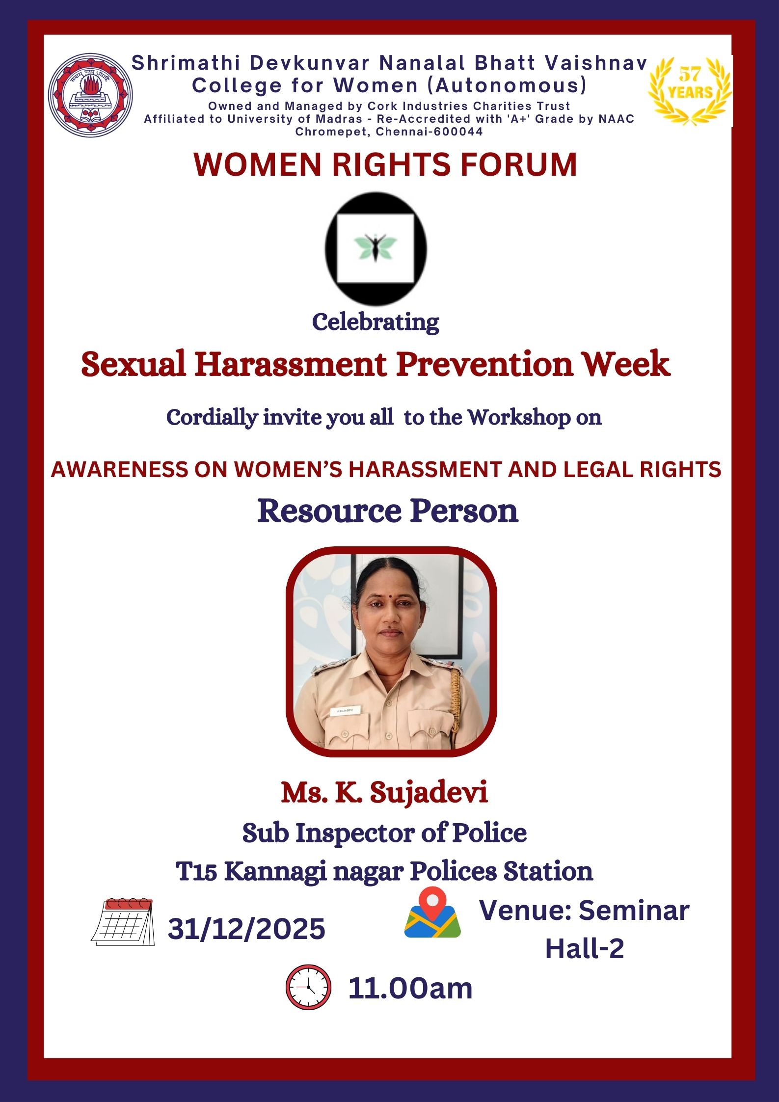 AWARENESS ON WOMEN’S HARASSMENT AND LEGAL RIGHTS + Add to Google Calendar + iCal export Hourly Schedule New Day