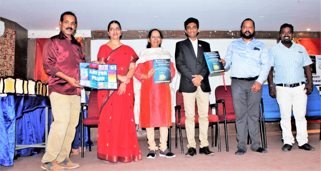 Mr.RohithMaradapa International Olympic Committee – Young Leader, Asian Medalist (Rowing) along with our principal and veeer foundation team members launched the newsletter Thandora – National art for peace