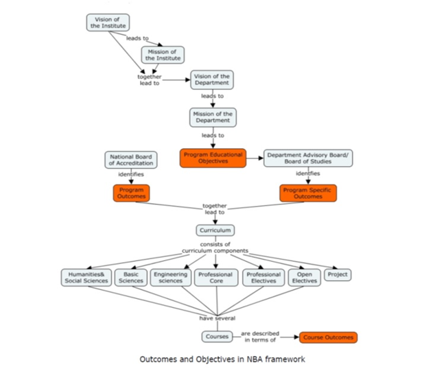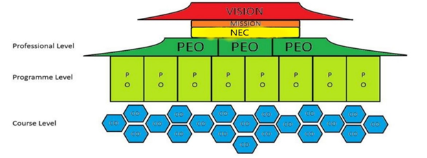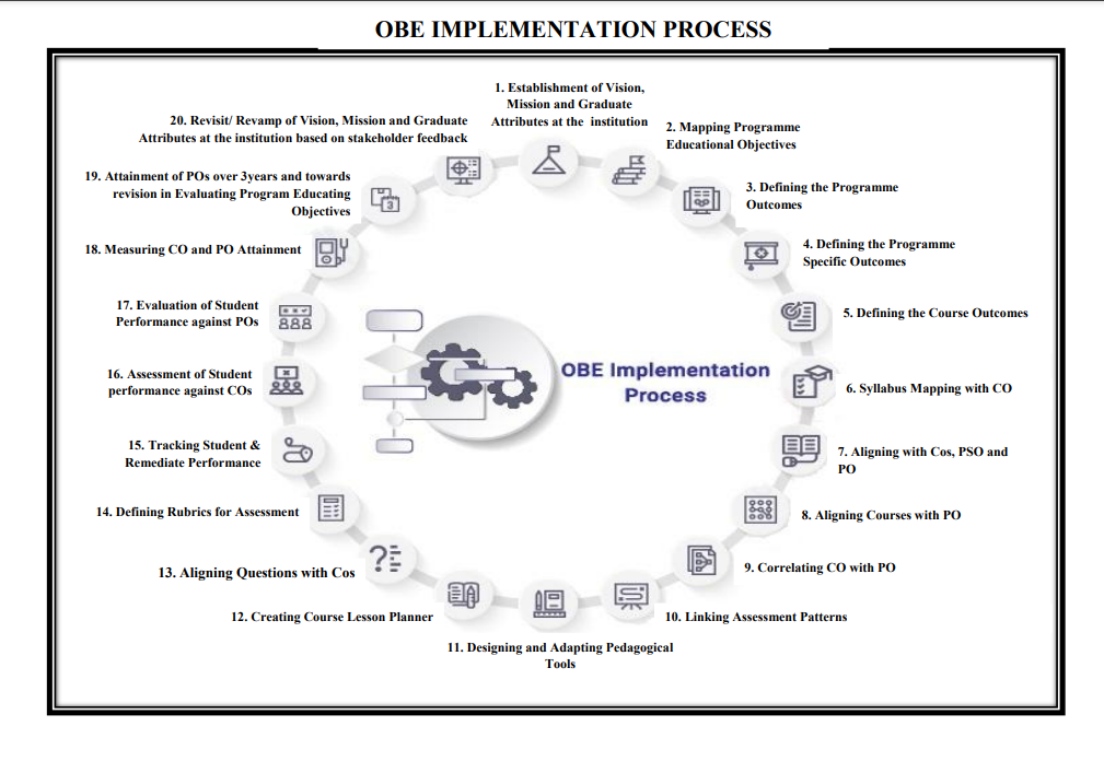 Quality assurance and improvement process is about determining whether the set educational objectives meet a general standard of quality. Emphasis of outcome-based education (OBE) system is on quantifying what the students are capable of doing and learning outcomes of the students is one of the key components. Course Outcomes are the statements indicating knowledge and skills the student is expected to acquire at the end of a course. Program outcomes represent the knowledge, skills and attitudes the students should have at the end of program. Program outcomes can be directly measured through course outcomes. The outcome-based education model is based on defining various parameters called as Graduates Attributes (POs).