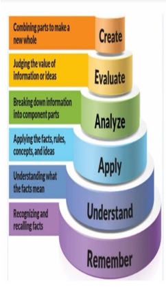 The blooms taxonomy is shown in figure where the lower levels become foundation for the higher levels. The Bloom’s taxonomy process is ordered in such a way that the lowest level is the simplest form of recognition, while the highest level built on lower levels involves more complex form of cognitive skill. By providing a hierarchy of levels, this taxonomy can assist teachers in designing assessment framework to measure the student’s learning ability and making teaching method, innovative and adaptive to student’s competencies and enhancing the same.