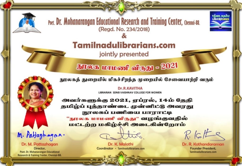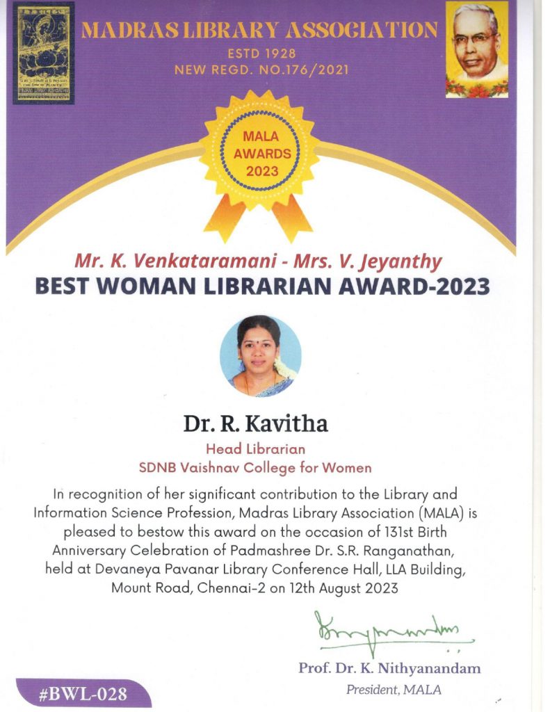 DR. R. KAVITHA MLIS, M.Phil., Ph.D |