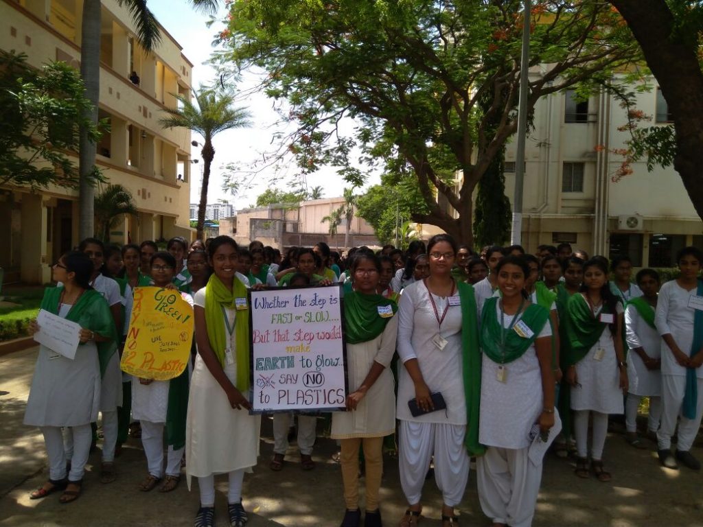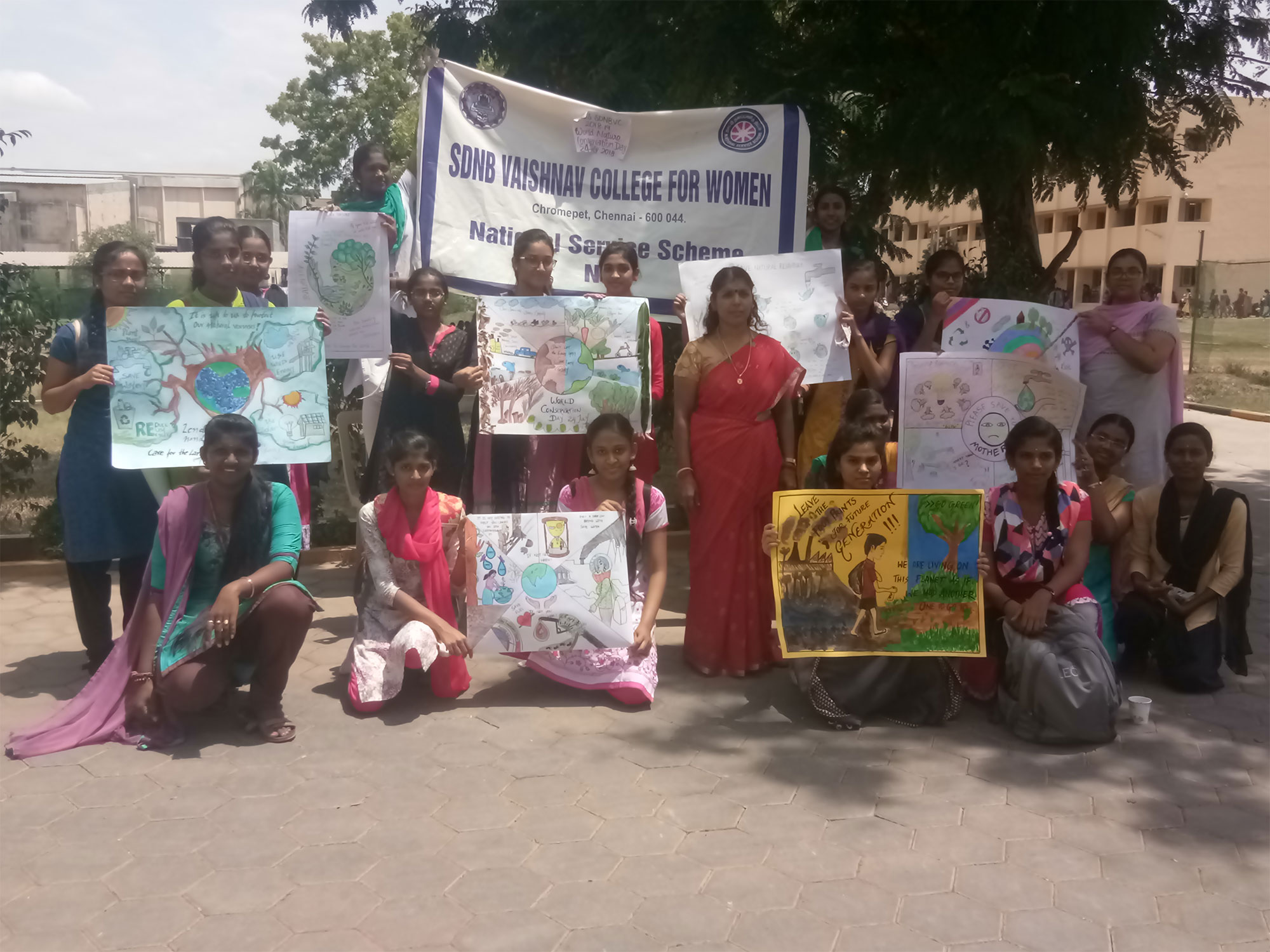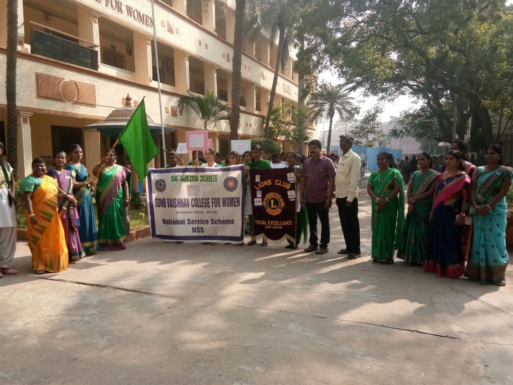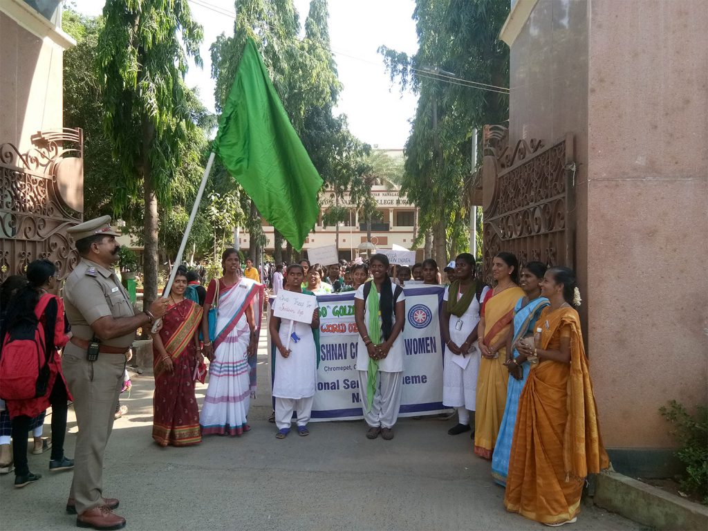 The NSS volunteers prepared banner, slogan, pluck card, charts, drawings etc. Around 150 volunteers went on walk in the Chrompet streets yellingglobal warming, stop burning and measures to control pollution.