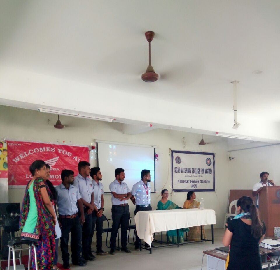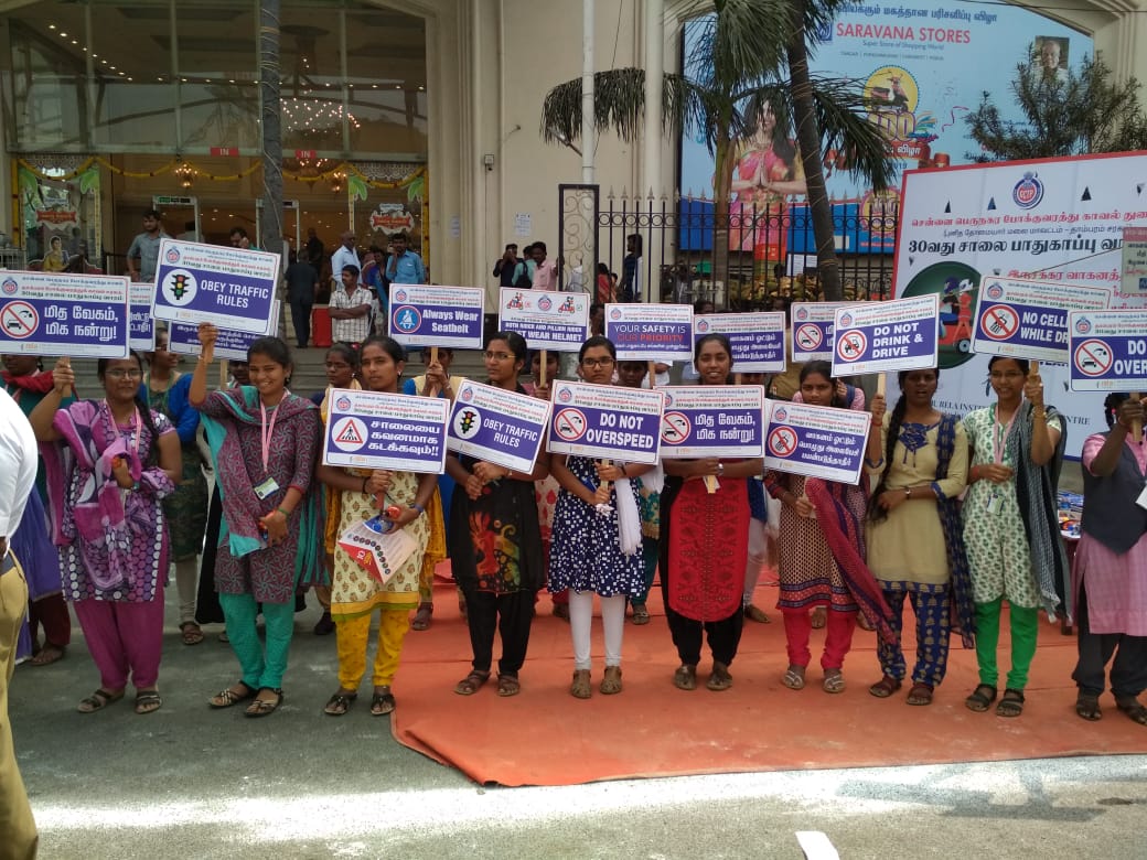 The college NSS volunteers with the Chennai traffic police and doctors from Rela actively involved in teaching the public traffic rules. Also, stuck stickers on to vehicles.