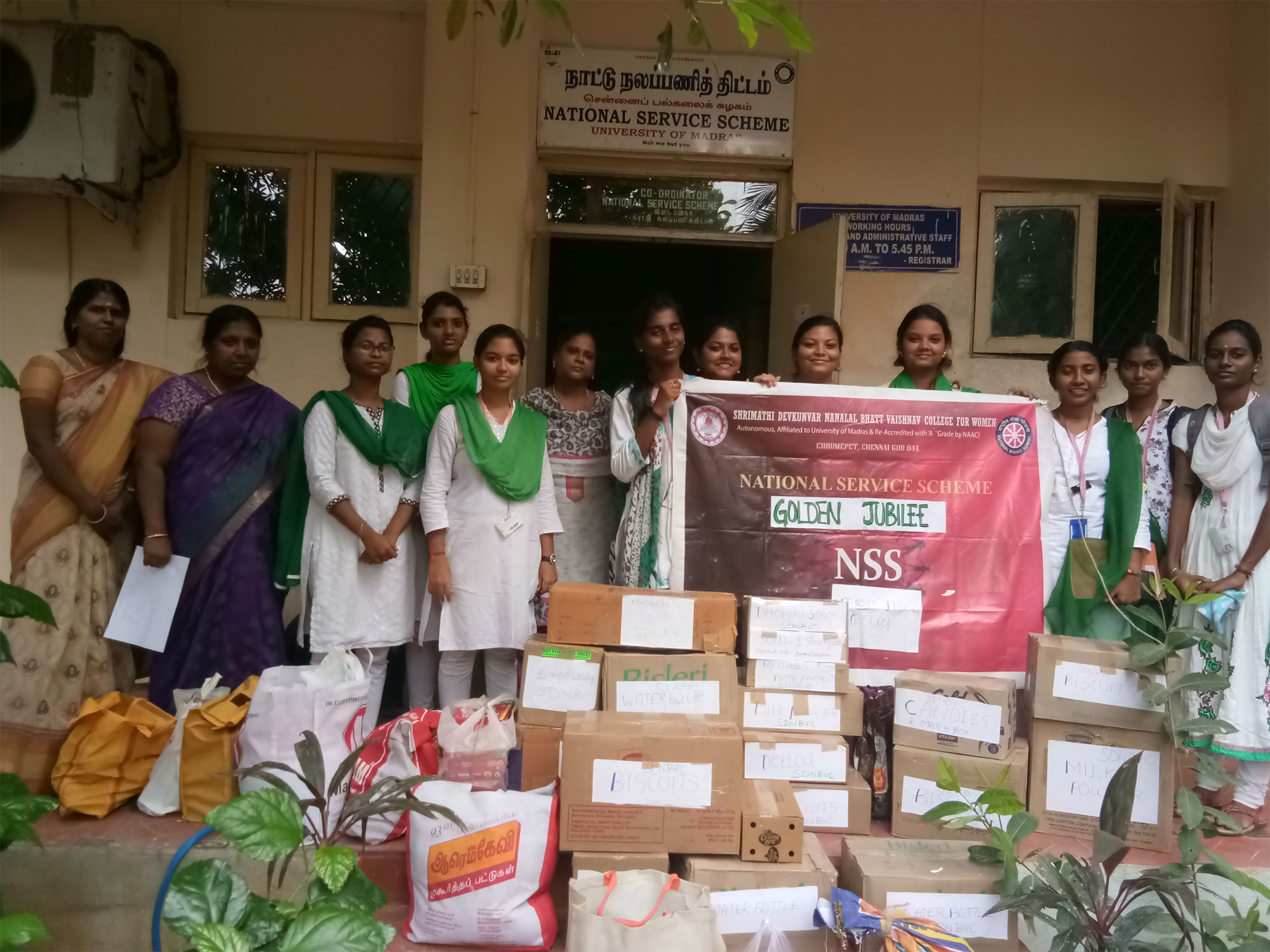 The college NSS volunteers dedicated them in collecting the relief material from friends and family members. Around 20+ Material were packed in large quantity.