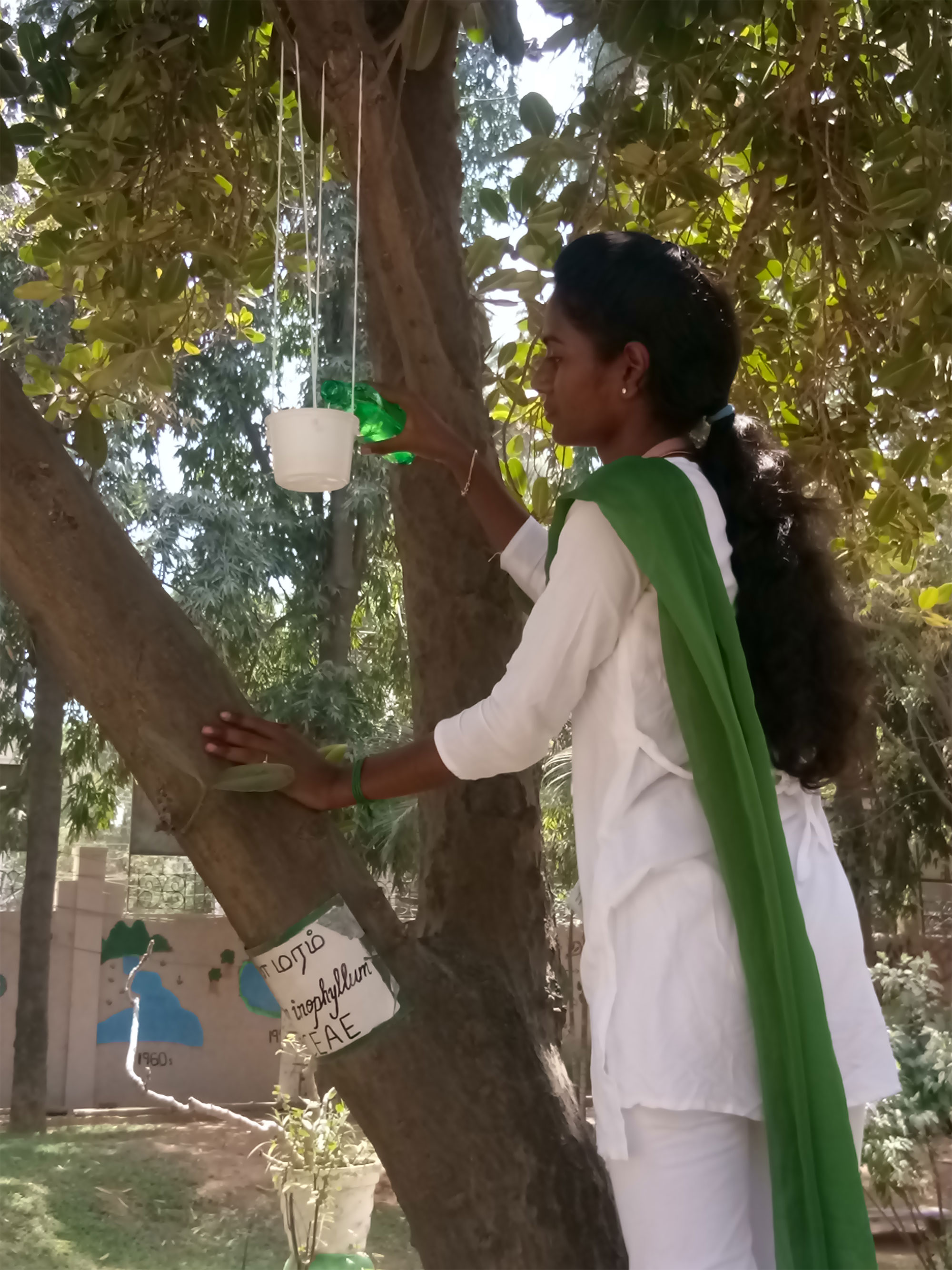 The college NSS volunteers made bird feed and hung it around the college campus as it can be helpful for birds in the summer season.