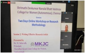 | 29/01/2022 | Writing Effective Research Article | Dr.K .Priya Research coordinator, PG and Research Department of Computer Science, Marudhar Kesari Jain College for women, Vaniyambadi |