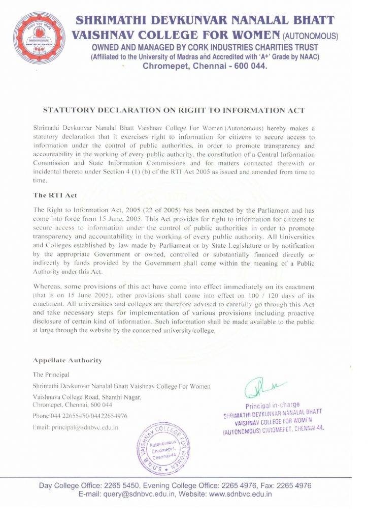 In pursuance of the Right to Information Act 2005, the Principal has been designated as Public Information Officer (PIO) and will perform the duties and responsibilities as envisaged under the act without fail.
