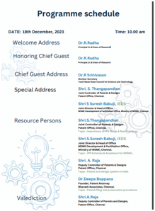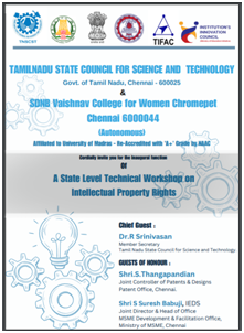 A 1-day State level Technical workshop on “Intellectual Property Rights” was conducted by the research cell of our college in collaboration with Tamilnadu State Council For Science and Technology on 18thDecember 2023 for the Research scholars and Staffs of various colleges.