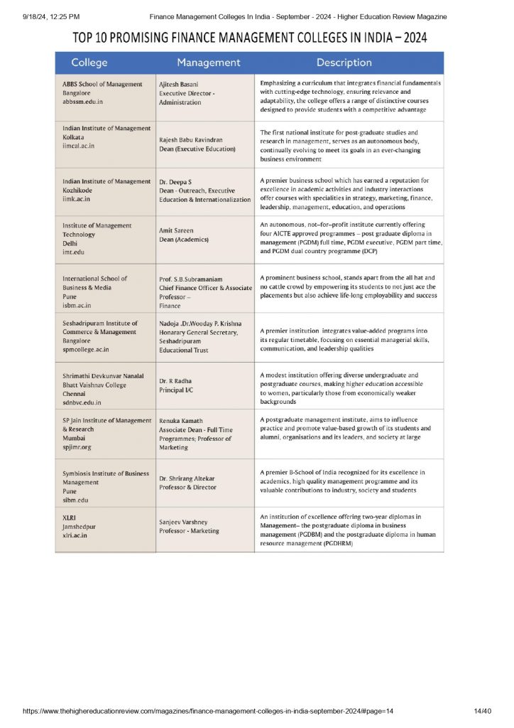 Recognized as a Top 10 Promising Finance Management College in India 2024! – For more Details