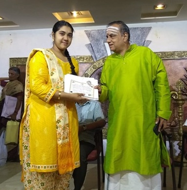 R.Aparna of II year BSc.Physics participated in the annual music competition 2019 held by “THE INDIAN FINE ARTS SOCIETY” for carnatic music (vocal) and had won 6 FIRST PRIZES in senior category of the following composers: Mysore Vasudevachariyar, Shyama shastri, Narayana theerthar tarangini, Arunachala kavirayar, Tyagaraja pancharatnam and Patnam Subramania Iyer.