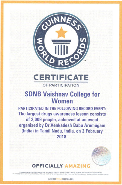 Student volunteers of SDNBVC participated in JPR College Drug Awareness Camp which created Guinness Record