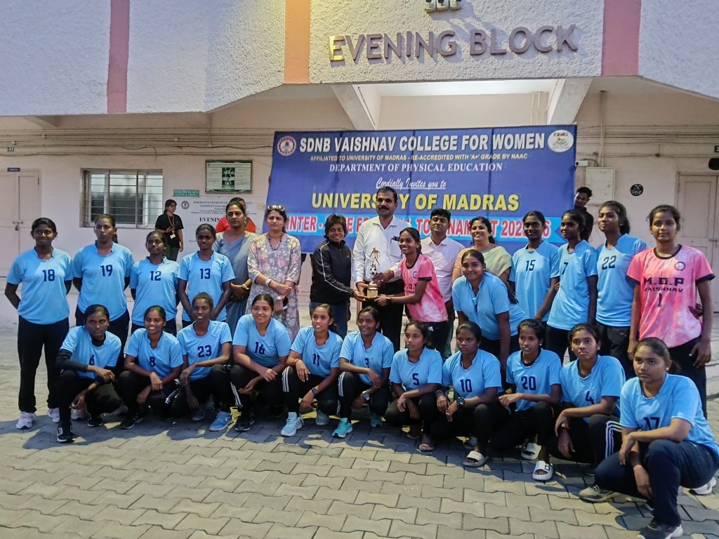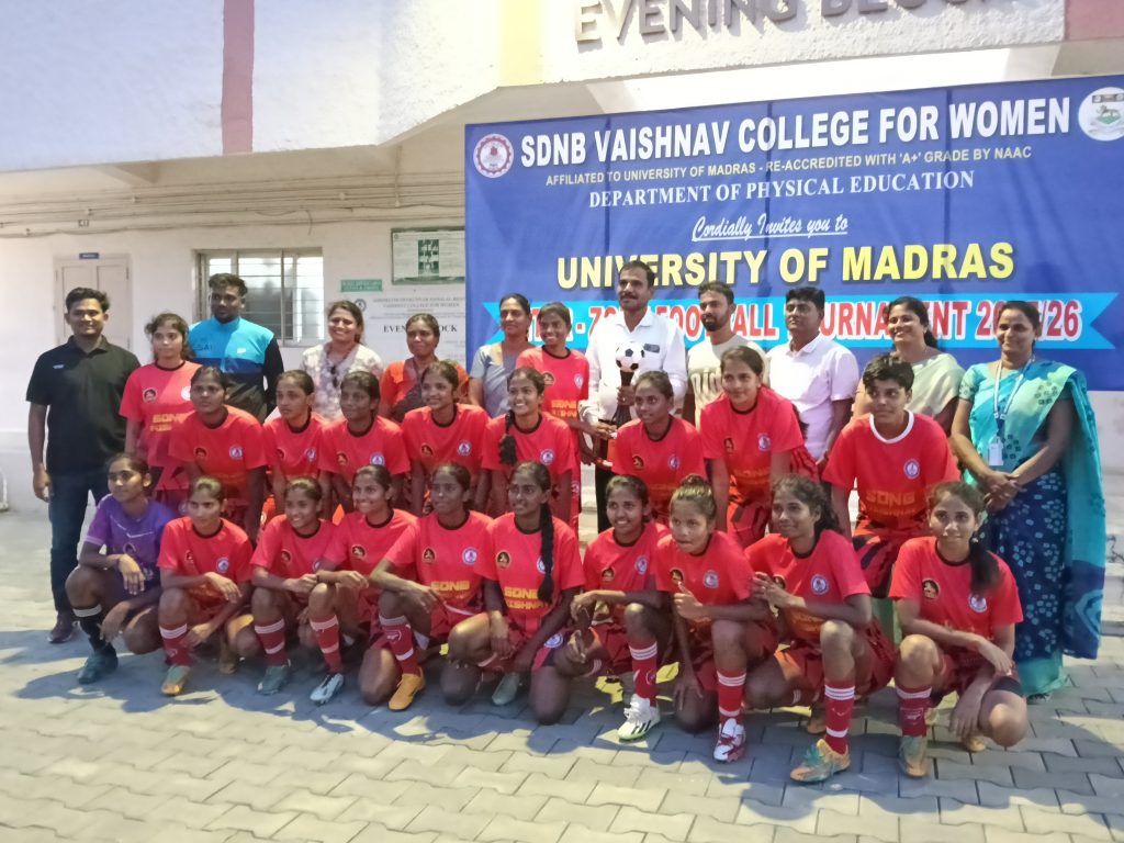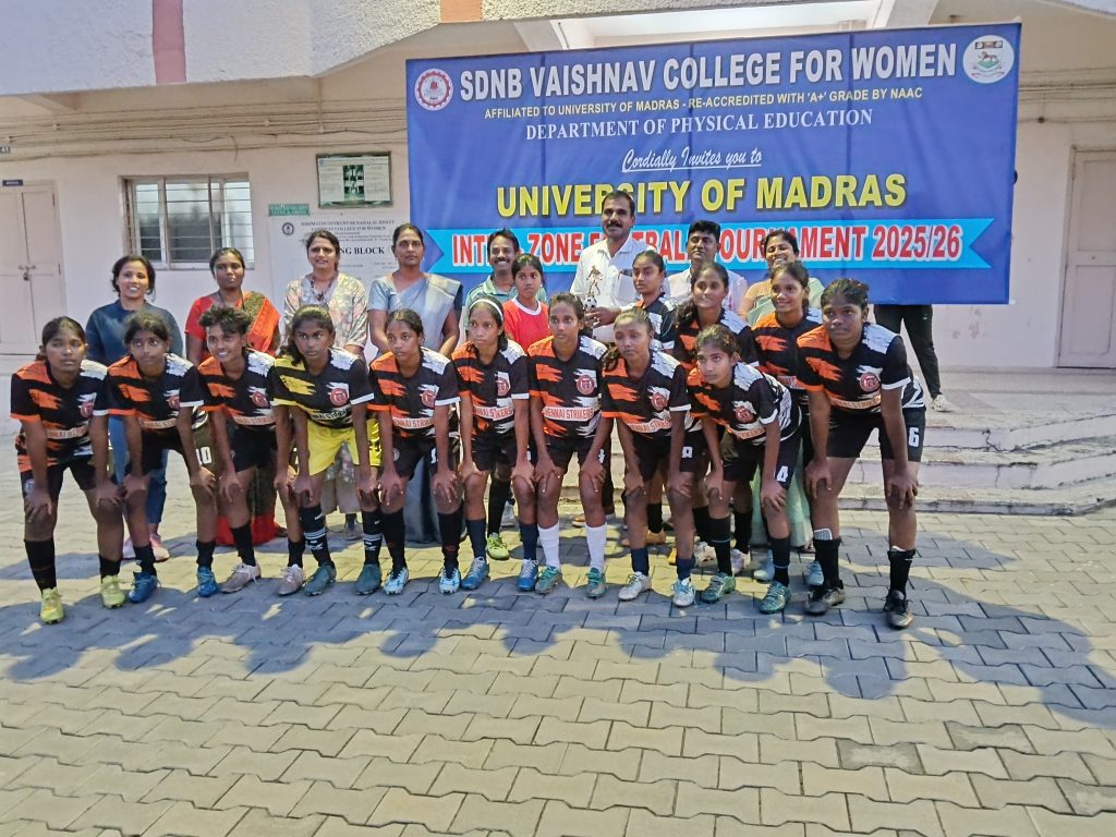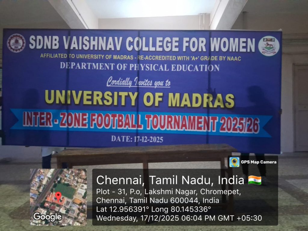 SDNB Vaishnav College for Women proudly hosted the University of Madras Inter-Zone Women’s Football Tournament on 17 December 2025. The tournament witnessed enthusiastic participation from four women’s teams representing various zones under the University of Madras.