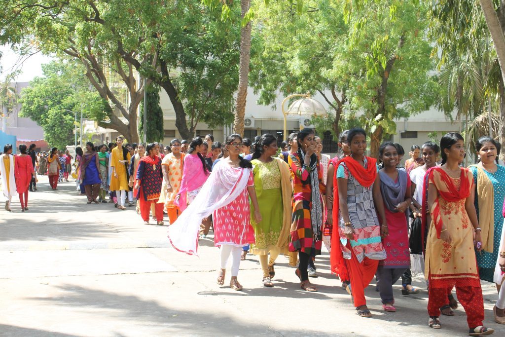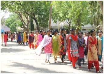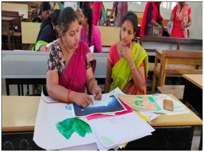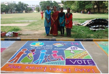 in order to create awareness on the importance of voting rights. Rangoli competition was held on 22-01-2020 by the union along with election commission. Deputy thahsildhar and other officers inspected the Rangolis made by the students related to the theme of election. Students enthusiastically participated and made informative Rangolis. The best Rangolis were selected by our college staff.