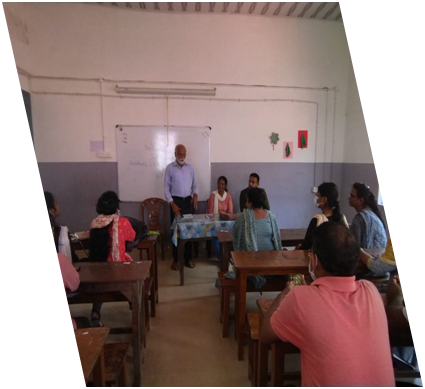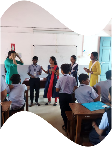 The students were conversant with the activities as they could assess the pulse of the students in the previous day. Two teaching sessions in the FN and One in the AN were conducted. As it was Harthal, 50% of the students turned in. Students were comfortable in handling less number of students in a class. They conducted a lot of Games, interactive activitiesand quiz. They used Projector and Laptop, white board effectively.