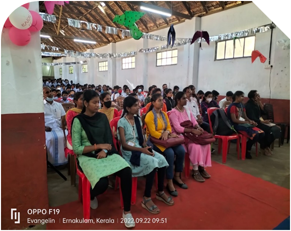 A team of 14 students accompanied by myself left Chennai on 20/9/22 from Chennai by Allapey Express at 8.50 PM. We reached Ernakulam at 9.15 AM. We were given accommodation in Don Bosco School in Vaduthala. We reached the school, refreshed and reached St. Joseph’s School, Chathiah around 11. 30. The students were divided into four teams. Dr. P. Bhaskaran Nair, and Dr.Vinija conducted training sessions for the students in the FN and AN respectively.